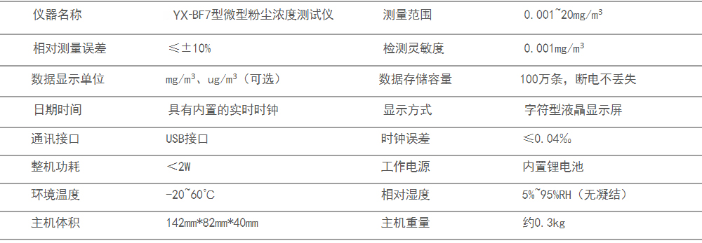 YX-BF7型微型粉尘浓度测试仪产品参数详情如下